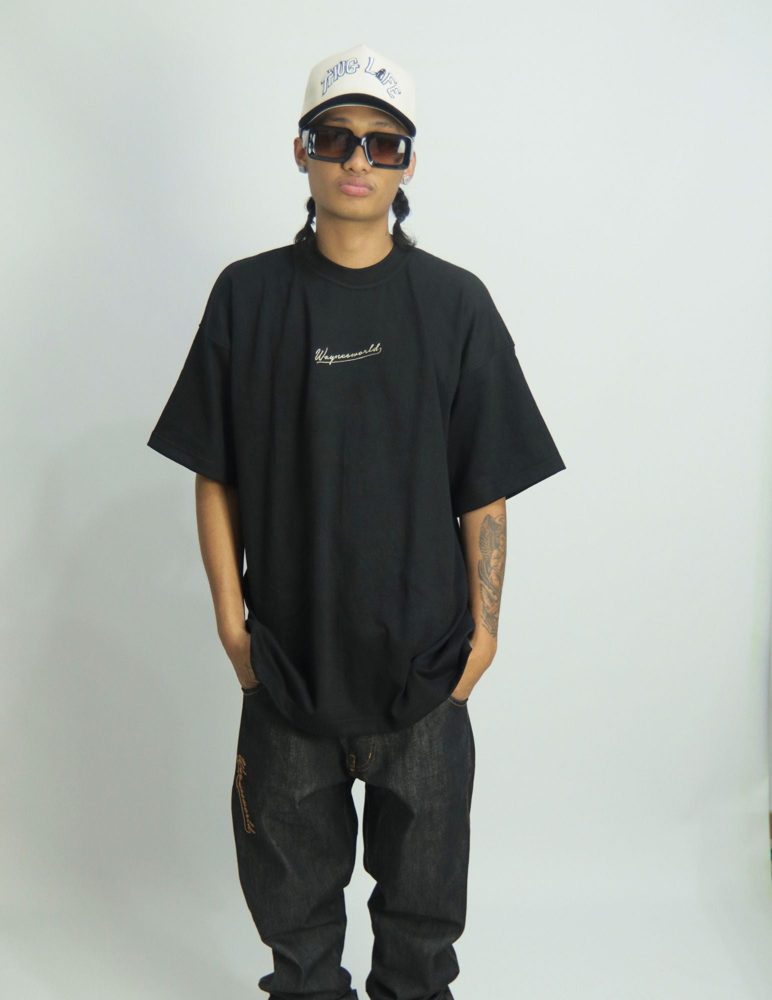 Black Heavyweight T-shirt featuring the iconic Waynesworld script logo. Crafted from premium heavyweight fabric, this tee delivers exceptional durability and comfort for year-round wear. The substantial weight provides structure and longevity, resisting shrinkage and fading through countless washes. Perfect for layering during colder months or standing alone as a statement piece. The classic Waynesworld design brings nostalgic style to your everyday wardrobe.